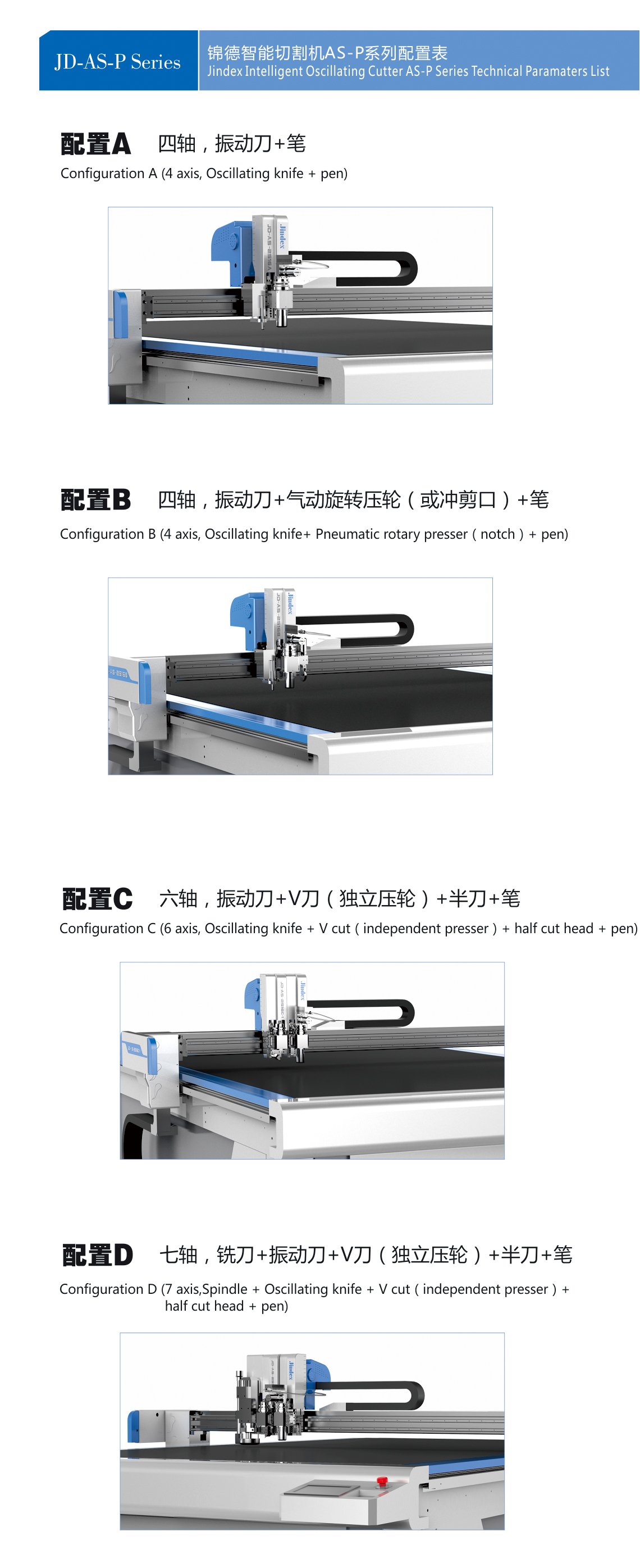 Package & Box Cutting Machine JD-AS-P-C Series Electrical oscillating knife cutting head, strong strength, high vibra... MORE