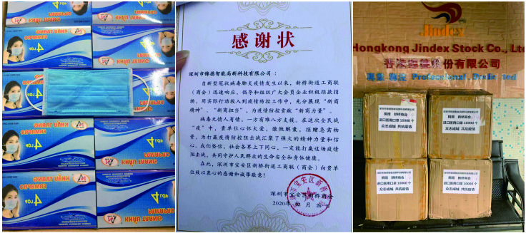 開年以來,錦德公司積極配合政府工作,積極響應(yīng)政府號(hào)令,深圳市錦德智能高新科技有限公司以柔性材料切割提供完整解決方案的產(chǎn)品研發(fā)及銷售,公司總經(jīng)理劉明軍先生表示:這個(gè)新型冠狀病毒肺炎出現(xiàn)的時(shí)候,我第一時(shí)間想到是我們應(yīng)該為社會(huì)做些事情。由于現(xiàn)在是在特殊時(shí)期,國(guó)內(nèi)口罩貨源緊張,立刻聯(lián)系國(guó)際友人,從國(guó)外緊急采購近萬個(gè)越南進(jìn)口醫(yī)用口罩,援助給新橋商會(huì)及新橋街道辦,為新橋街道的疫情防控工作助力,以實(shí)際行動(dòng)踐行企業(yè)家的社會(huì)責(zé)任與擔(dān)當(dāng),盡微薄之力!