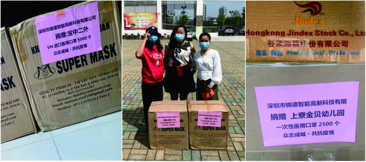 2020年3月,為助力周邊學(xué)校,幼兒園 正常復(fù)課,公司再次捐贈(zèng)2批醫(yī)用口罩給寶中二外學(xué)校 和上寮金貝幼兒園,寶中二外副校長(zhǎng)練佩敏女士和上寮金貝幼兒園園長(zhǎng)魏芳女士 分別接受捐贈(zèng)及表示感謝;任重道遠(yuǎn),盡善身邊,我們?cè)谛袆?dòng)~