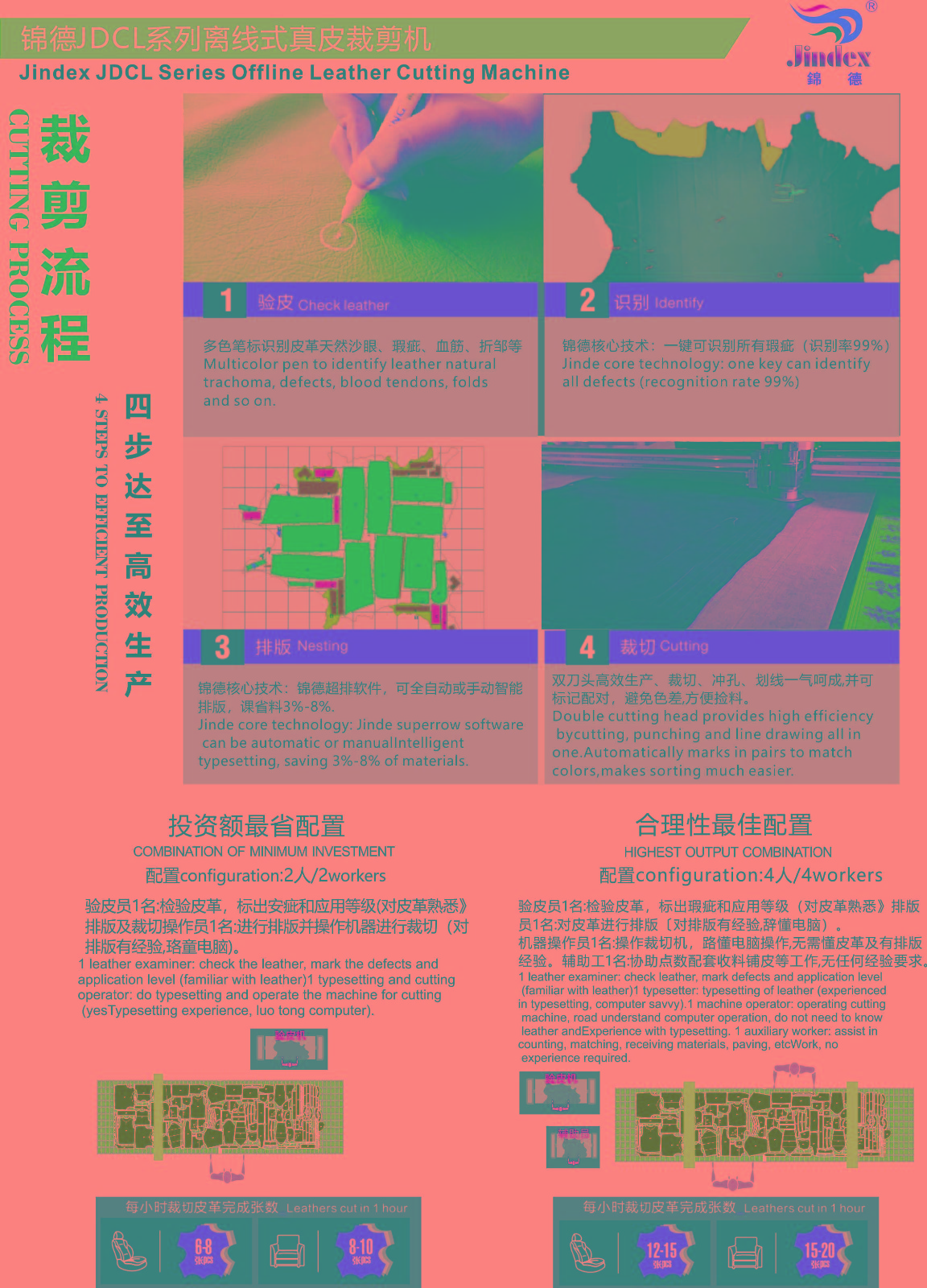 錦德真皮裁剪流水線系統(tǒng)采用先進(jìn)的高清全彩真皮輪廓采集系統(tǒng),通過高精度掃描...